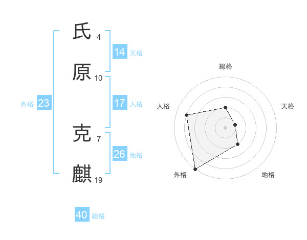 氏原 克麒さんの外格は23画の5点!