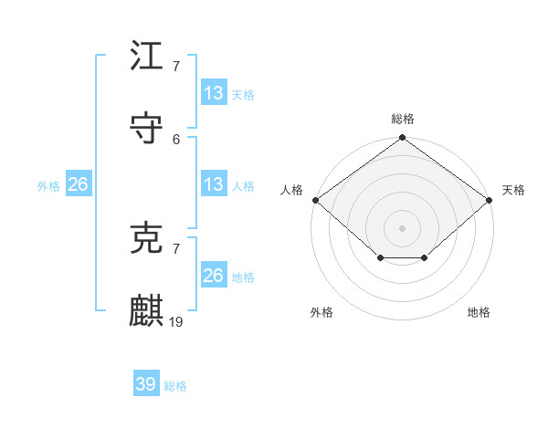江守 克麒さんの天格は13画の5点!