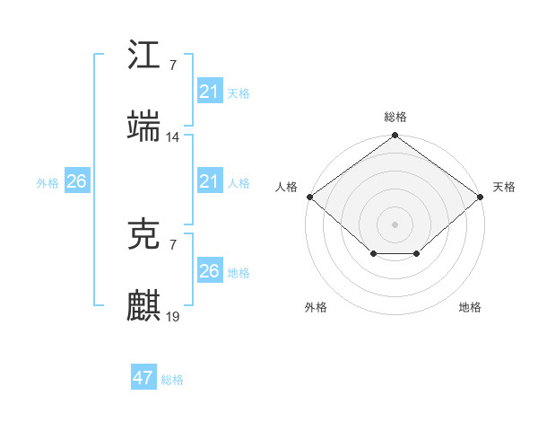 江端 克麒さんの天格は21画の5点!