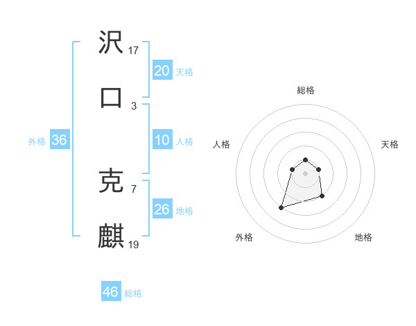 沢口 克麒さんの天格は20画の1点!