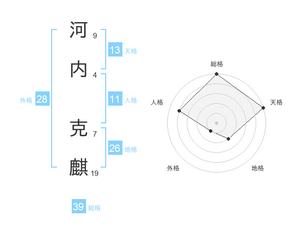 河内 克麒さんの天格は13画の5点!