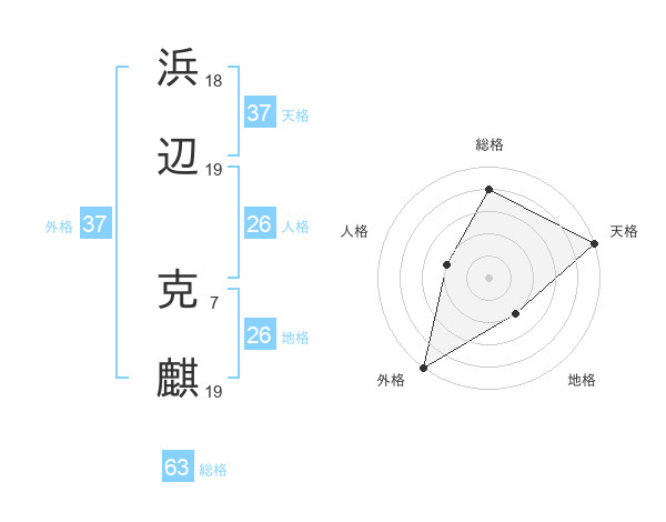浜辺 克麒さんの外格は37画の5点!