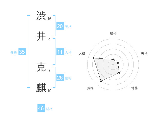 渋井 克麒さんを姓名の画数から五運を鑑定