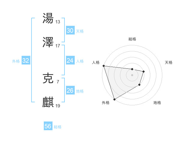 湯澤 克麒さんを姓名の画数から五運を鑑定
