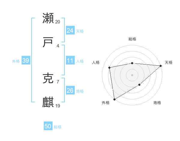 瀬戸 克麒さんの総格は50画の2点!