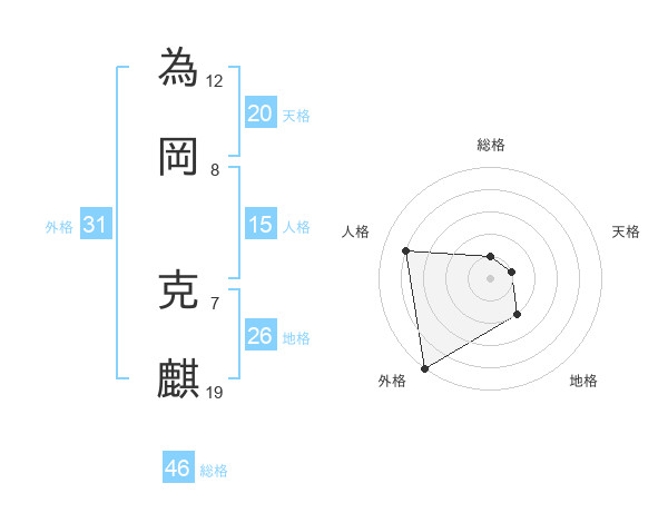 為岡 克麒さんを姓名の画数から五運を鑑定