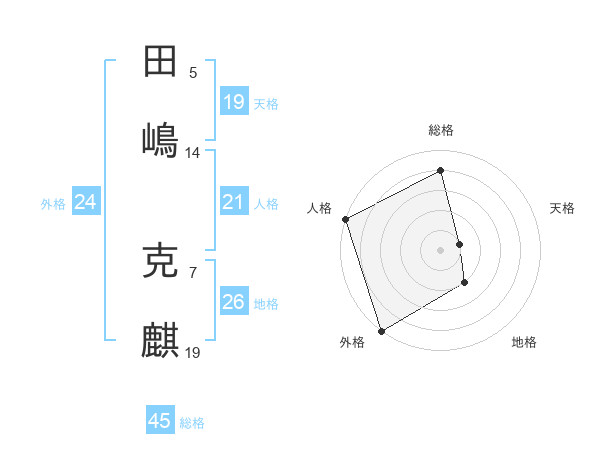 田嶋 克麒さんを姓名の画数から五運を鑑定