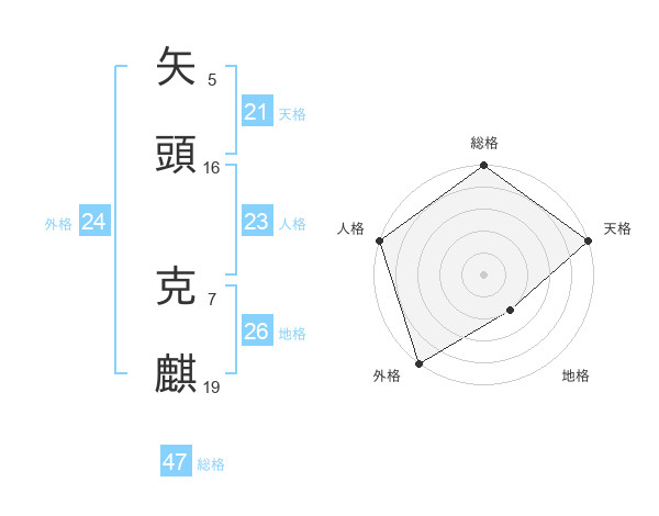 矢頭 克麒さんの総格は47画の5点!