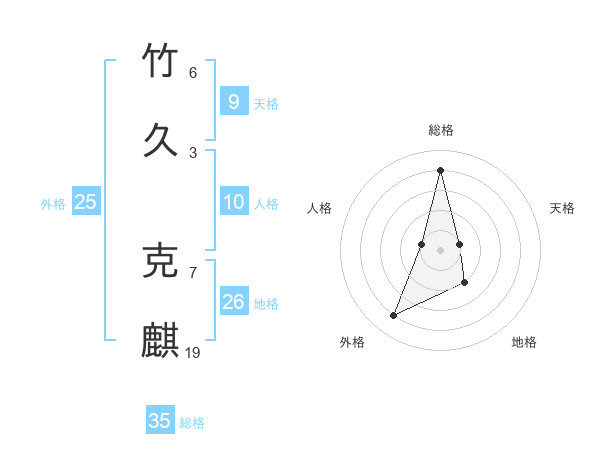竹久 克麒さんを姓名の画数から五運を鑑定