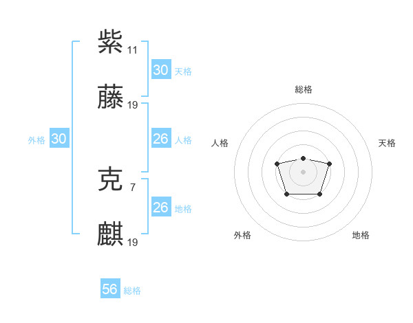 紫藤 克麒さんの天格は30画の2点!