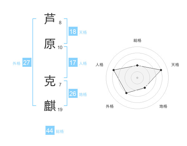 芦原 克麒さんを姓名の画数から五運を鑑定
