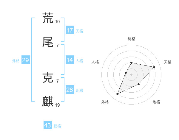 荒尾 克麒さんの天格は17画の4点!