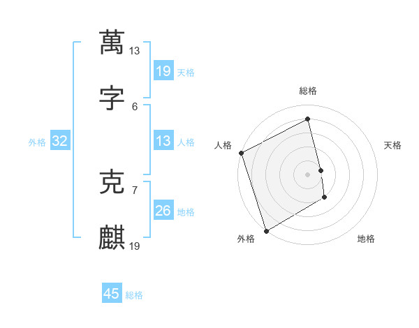 萬字 克麒さんの外格は32画の5点!