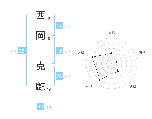 西岡 克麒さんの天格は14画の1点!