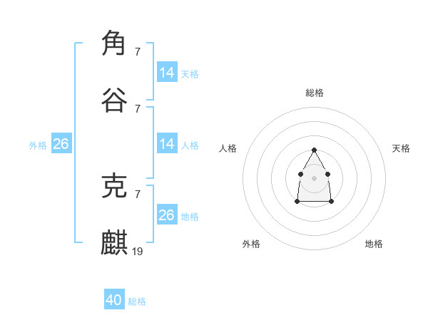 角谷 克麒さんの外格は26画の2点!