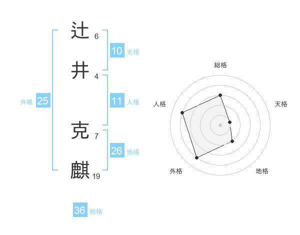 辻井 克麒さんを姓名の画数から五運を鑑定