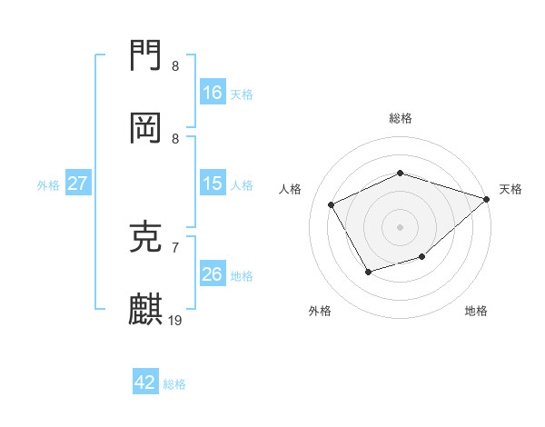 門岡 克麒さんを姓名の画数から五運を鑑定
