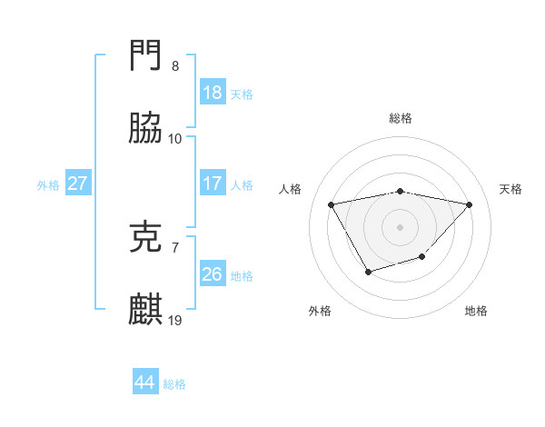 門脇 克麒さんの天格は18画の4点!