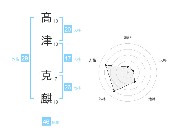 髙津 克麒さんを姓名の画数から五運を鑑定