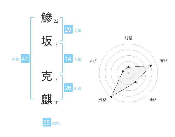 鰺坂 克麒さんの総格は55画の1点!