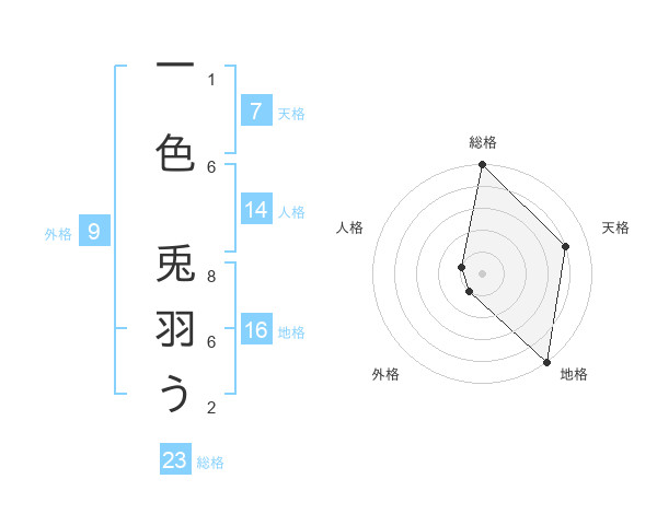 一色 兎羽うさんを姓名の画数から五運を鑑定