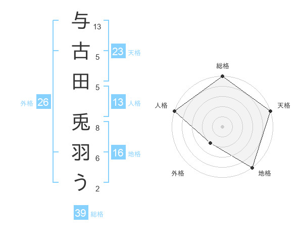 与古田 兎羽うさんの天格は23画の5点!