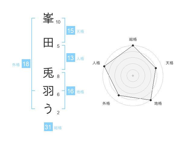 峯田 兎羽うさんの天格は15画の4点!