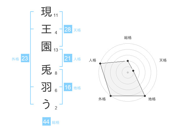 現王園 兎羽うさんを姓名の画数から五運を鑑定