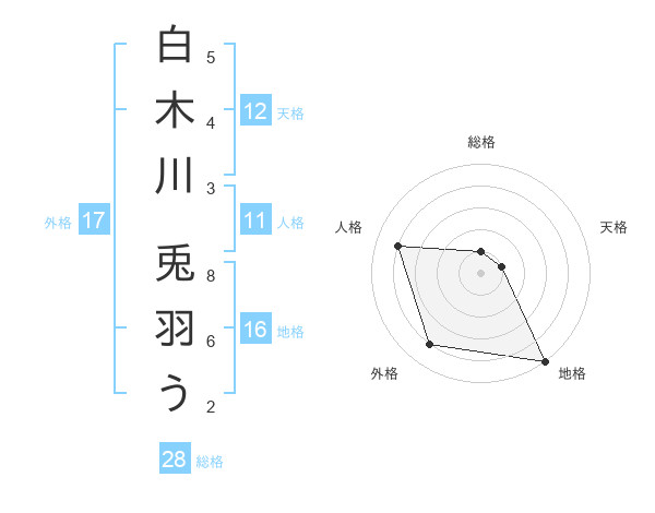 白木川 兎羽うさんを姓名の画数から五運を鑑定