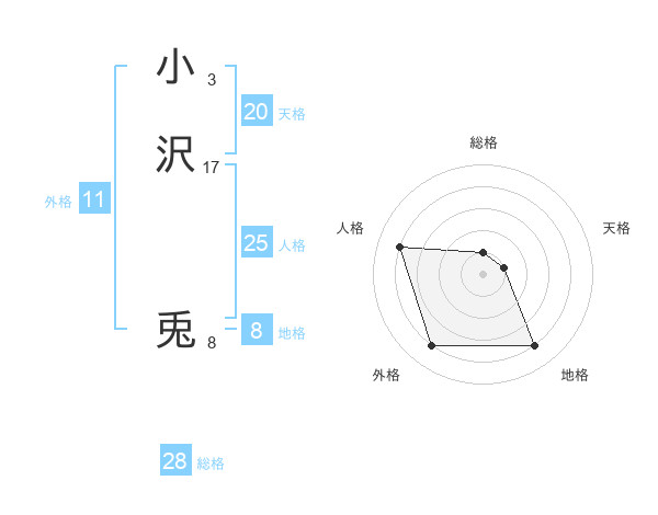 小沢 兎さんの総格は28画の1点!