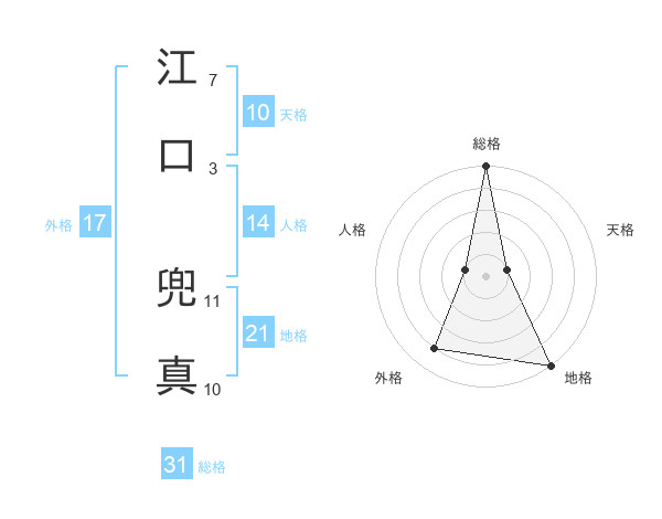 江口 兜真さんの総格は31画の5点!