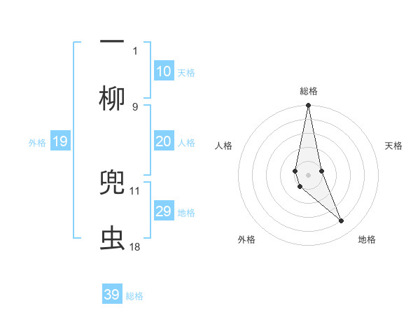 一柳 兜虫さんの総格は39画の5点!