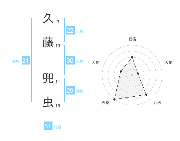 久藤 兜虫さんの総格は51画の3点!