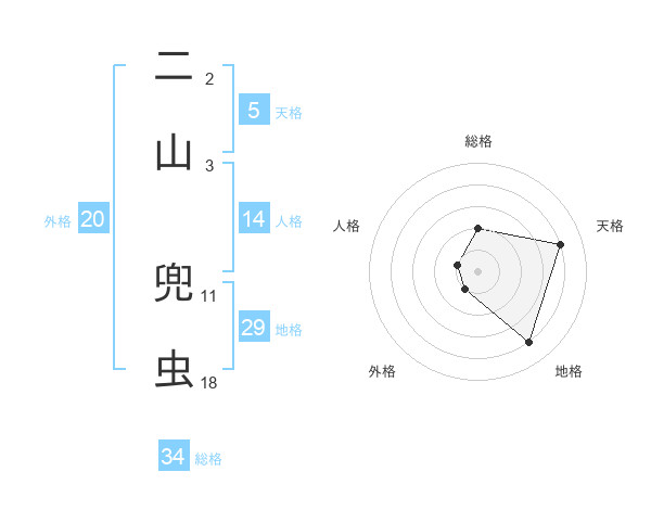 二山 兜虫さんの天格は5画の4点!
