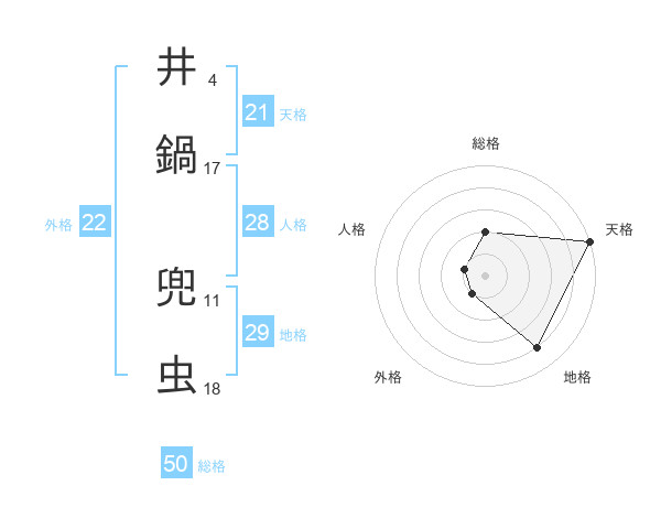 井鍋 兜虫さんの総格は50画の2点!