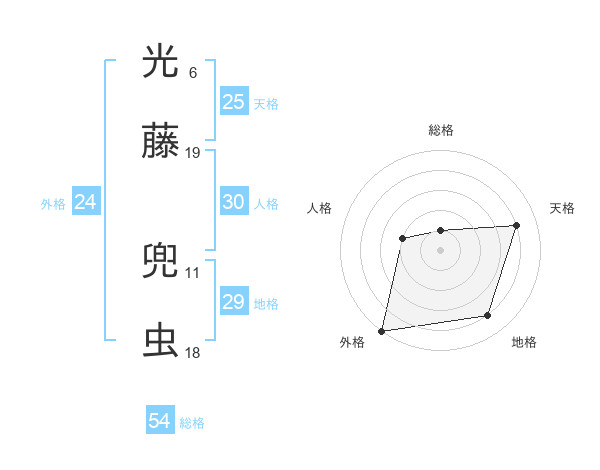 光藤 兜虫さんの総格は54画の1点!