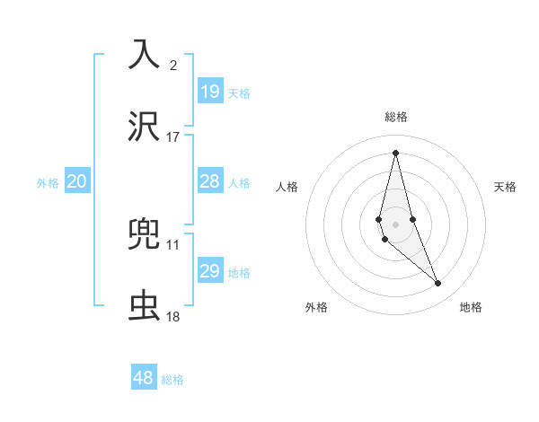 入沢 兜虫さんの総格は48画の4点!