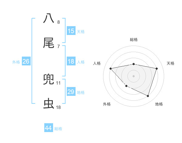 八尾 兜虫さんの天格は15画の4点!