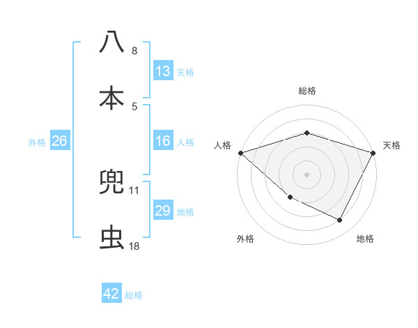 八本 兜虫さんを姓名の画数から五運を鑑定
