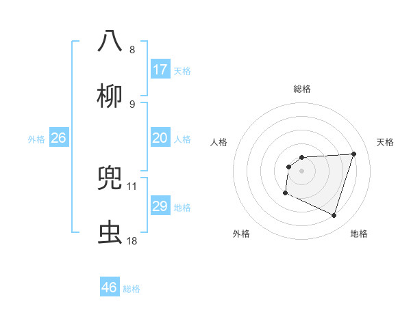 八柳 兜虫さんを姓名の画数から五運を鑑定