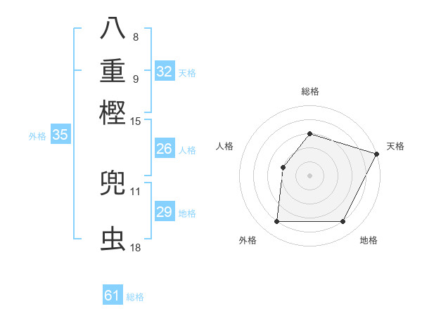 八重樫 兜虫さんの総格は61画の3点!