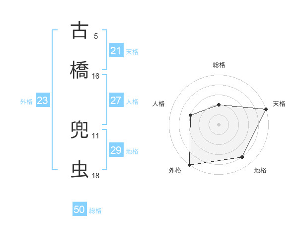 古橋 兜虫さんの総格は50画の2点!