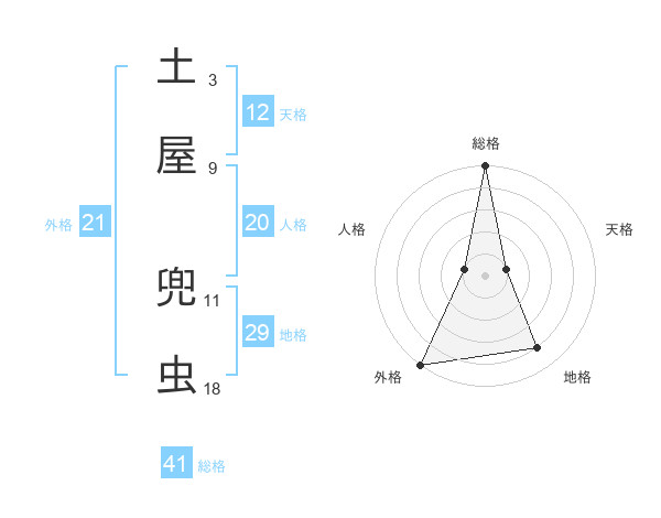 土屋 兜虫さんの総格は41画の5点!