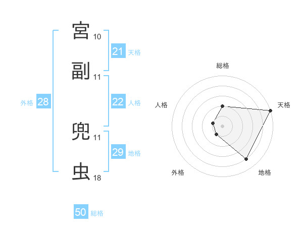 宮副 兜虫さんを姓名の画数から五運を鑑定
