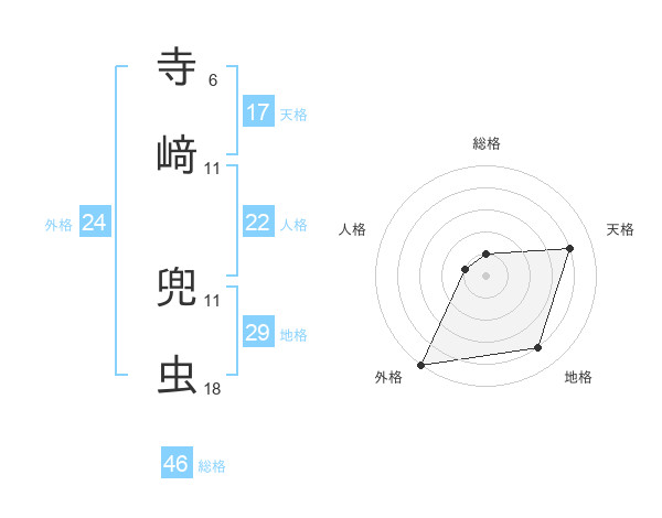寺﨑 兜虫さんの総格は46画の1点!