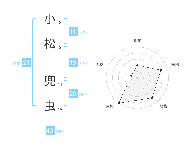 小松 兜虫さんの天格は11画の4点!