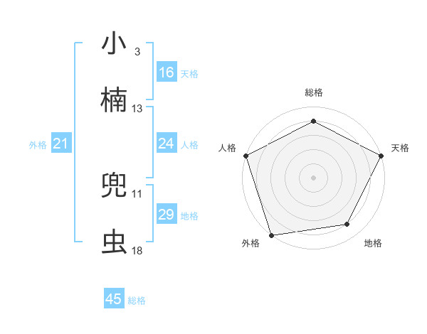 小楠 兜虫さんの総格は45画の4点!