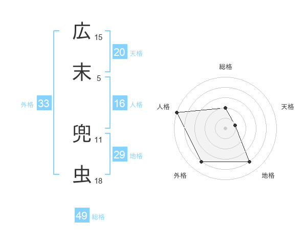 広末 兜虫さんの地格は29画の4点!