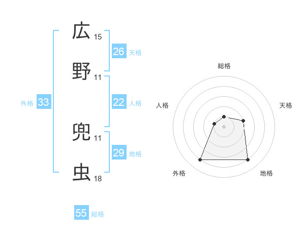 広野 兜虫さんの総格は55画の1点!