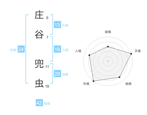 庄谷 兜虫さんを姓名の画数から五運を鑑定